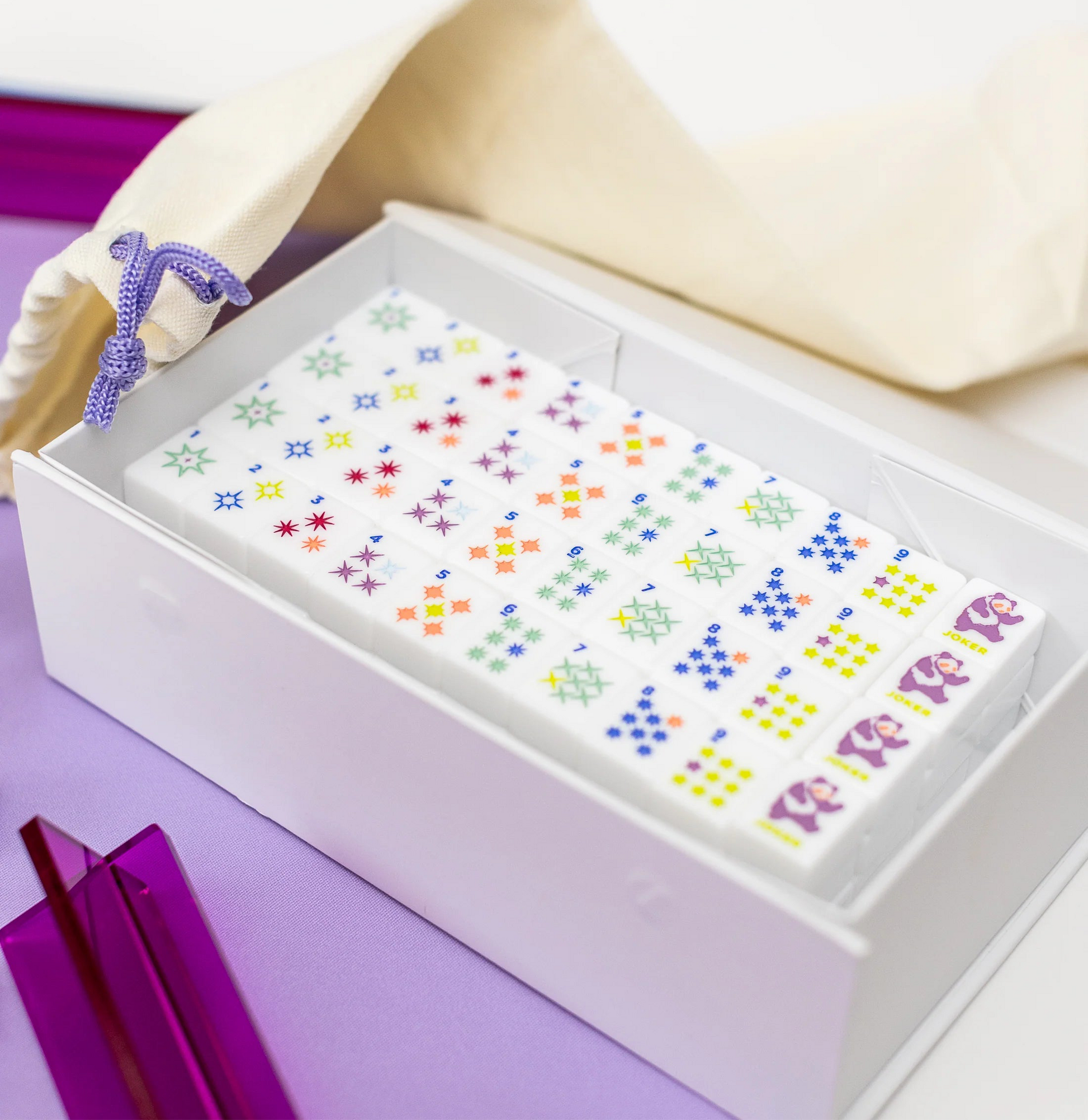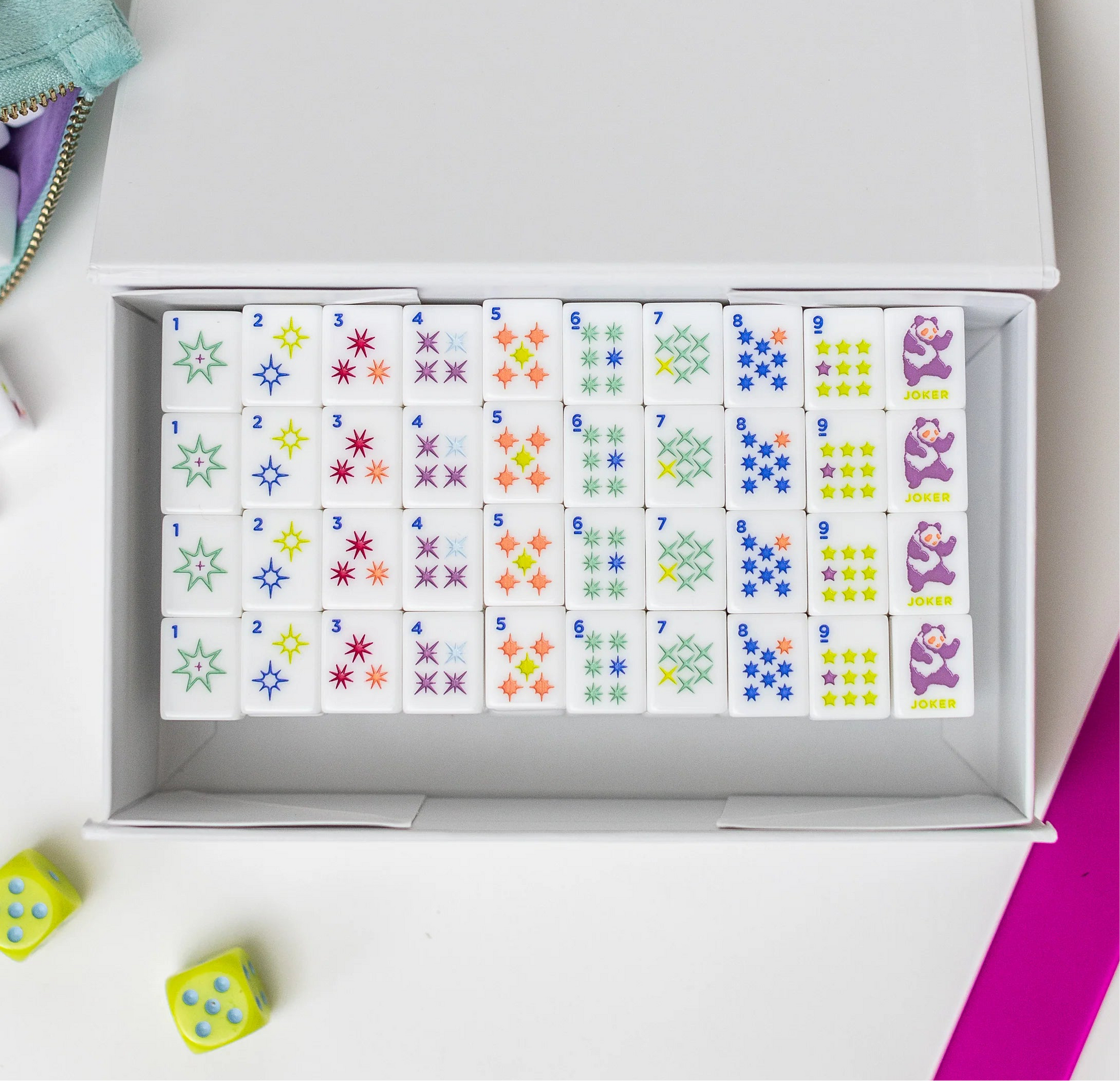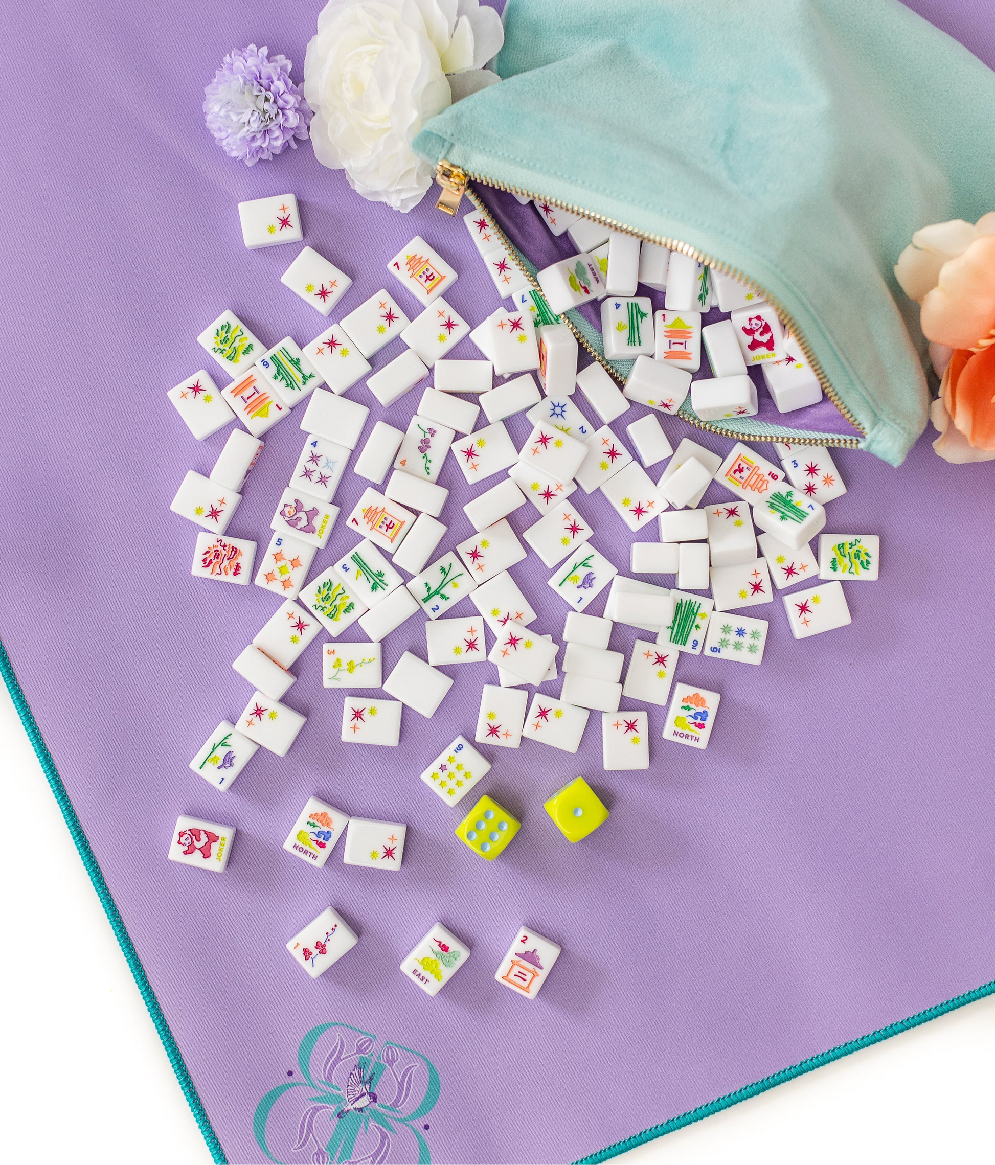 Mahj on the go has never looked so good! The East Meets West Travel Tile Set by Bam Bird Boutique is a smaller version of their classic tile set. The petite tiles are the perfect travel companion.