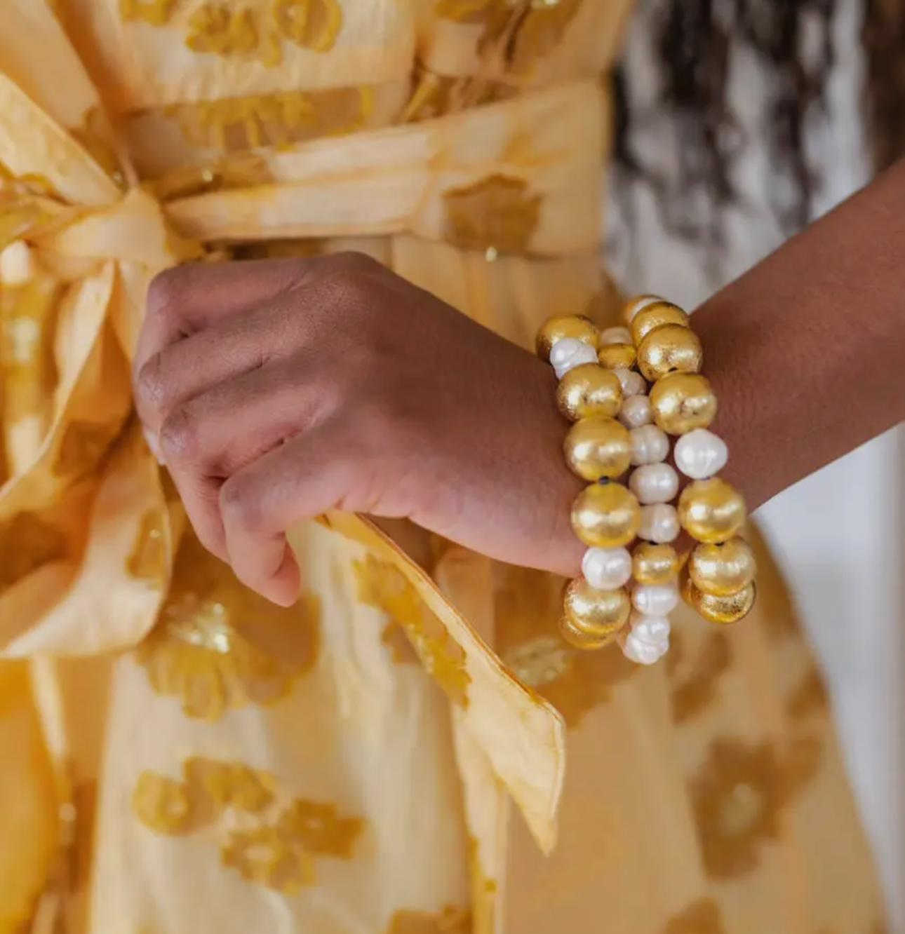 Make your everyday outfits pop with the Georgia Gold Beaded Statement Bracelet by Lisi Lerch! Available in 4 bead sizes, this metallic brass beauty is a must-have.