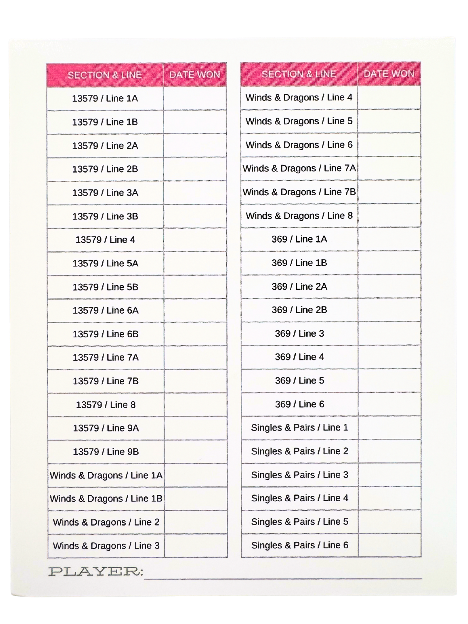 Challenge yourself with the custom Line Completion Card by Let’s Go Mahjong. Keep track of all the hands you complete throughout the year on the 2025 card.