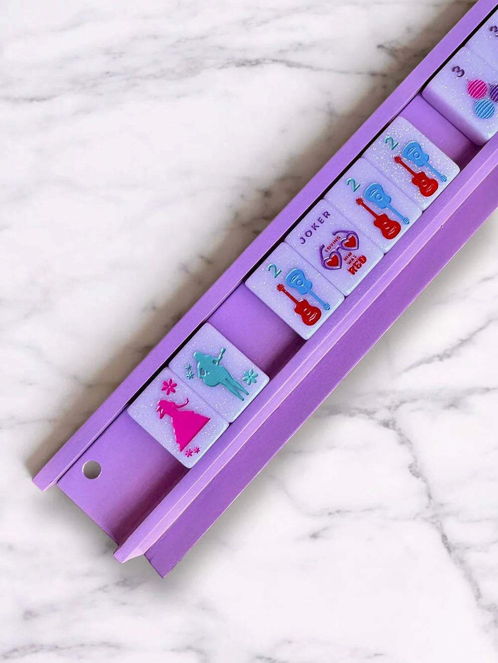 We love the sleek durability of mahjong racks and pushers by Peace Love & Mahjong. We have two options, oak and white which perfectly complement any tile color. Our mahjong racks are made especially for our larger tiles. They are designed to curtsy your entire wall in one motion and will eliminate the hassle of those extra tiles hanging off the end of your shortie racks. We strong suggest adding one of our velvet rack bags to store and protect your racks when not in use. Size: 20" x 2.75" x 1" Tips: Our mahjong racks & pushers are painted so protect them when not in use by wrapping them up. Chips in the paint are possible if they are allowed to bang into each other.