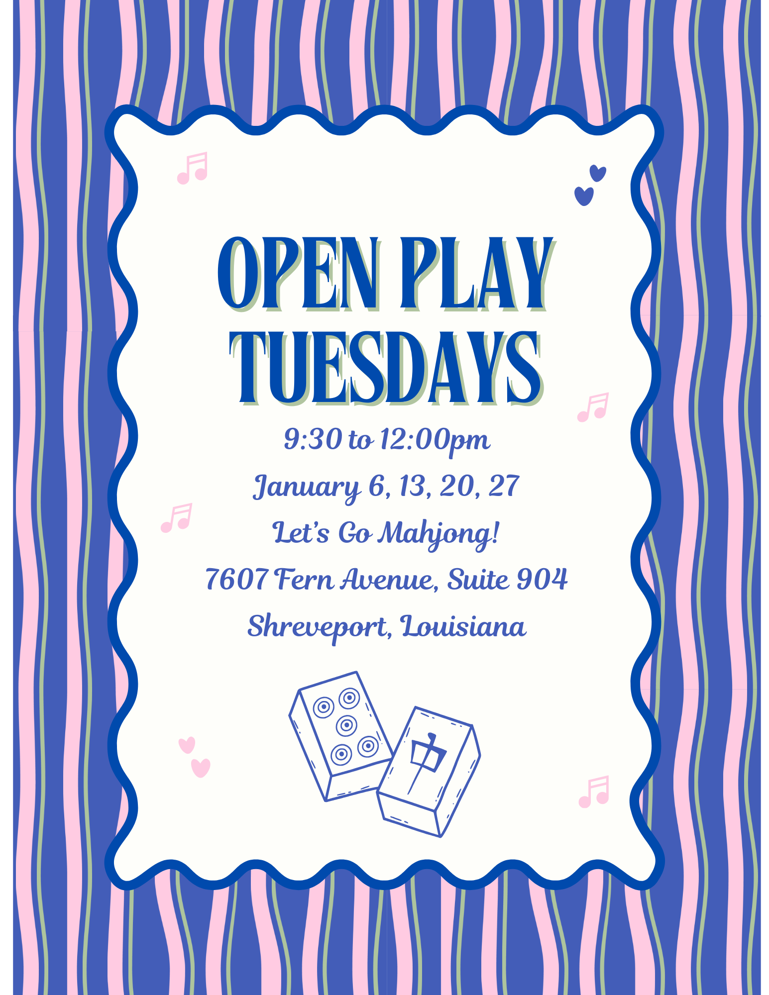 Join us at Let’s Go Mahjong’s new studio on Tuesday mornings for fun around the mahjong table.